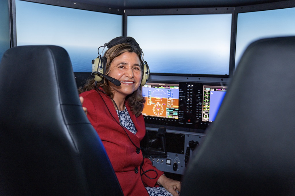 Seguidamente se realizó una demostración de simulación de vuelo, en el nuevo Simulador REDBIRD FMX, en la que participó la Dra. Mirtha Moore, Vicerrectora Académica; la Vicerrectora de Investigación, Postgrado y Extensión, Dra. Lilia Muñoz; el Dr. Aguilar, entre otras autoridades universitarias.